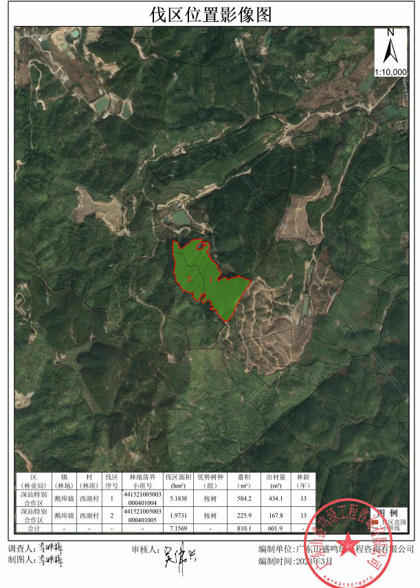 现有吴木清因个人所有的林木成熟向深圳市深汕特别合作区城市管理和综合执法局申请林木采伐,申请采伐地点:深汕特别合作区鹅埠镇西湖村委庭寮背村麻岭坳,地籍号441521005003000401004、441521005003000401005(详见附图),采伐树种为桉树,采伐面积7.1569公顷(8939株),采伐蓄积810.1立方米,采伐类型:主伐,采伐方式:皆伐。