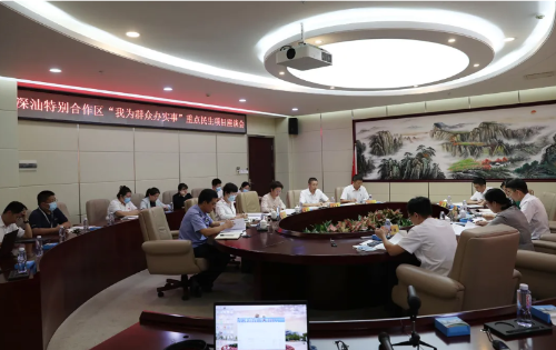 9月23日,市委党史学习教育第二巡回指导组组长林苗一行到深圳市深汕特别合作区(简称“深汕合作区”)指导党史学习教育工作,就深入推进“我为群众办实事”实践活动调研和座谈。