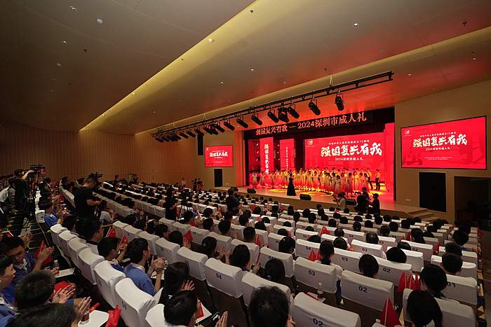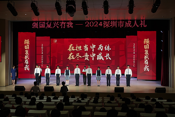 9月25日,由深圳市委宣传部、市委网信办、市委教育工委与团市委联合主办,深圳报业集团深圳晚报社、福田中学承办的2024深圳市成人礼在福田中学演艺中心举行。数百名深圳学子作为青年代表宣誓明志,在父母与师长的深情陪伴下,接受来自深圳全城和社会各界的诚挚祝福。