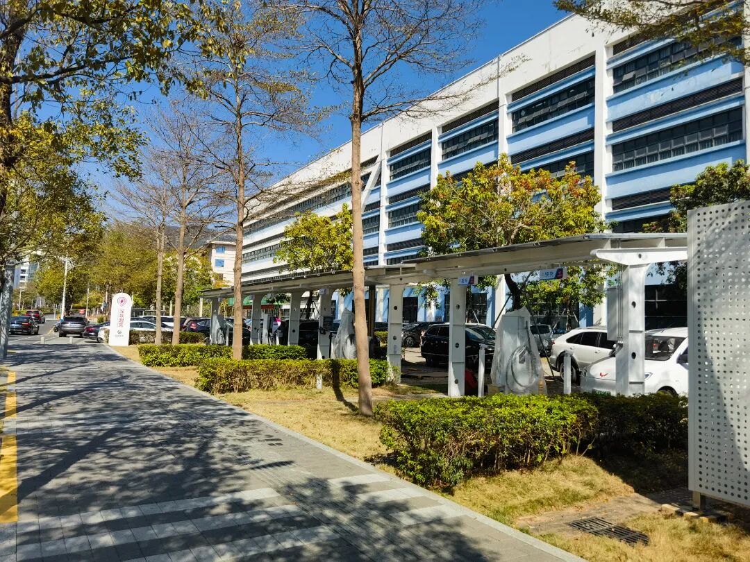 该充电站由深汕投控集团公司 下属深汕智集电投公司打造 位于鹅埠街道创富路文贞楼 3栋门口停车场 用地面积约140平方米 共设有8个停车位 配备1套636kW光储充一体化主机 3台充电终端和6把充电枪 此外还设置1台120kW一体化直流充电桩 可满足不同车辆的充电需求 实现“15分钟满电”需求