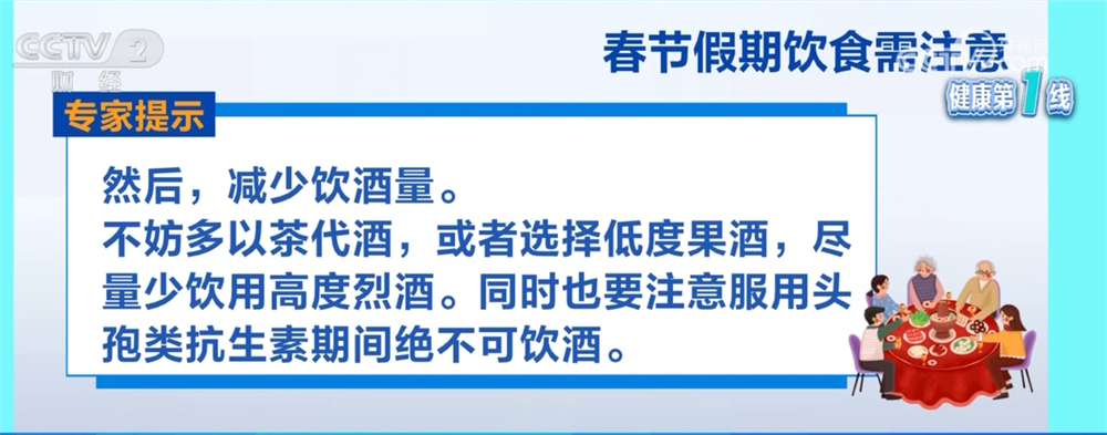 专家提示:首先,建议每餐以七八分饱为宜。 其次,讲究“合理膳食”。减少大鱼大肉的食用量,避免油炸、煎炒,降低油、盐、糖的摄入。合理搭配主食、肉类、蔬菜和水果。然后,减少饮酒量。不妨多以茶代酒,或者选择低度果酒,尽量少饮用高度烈酒。同时也要注意服用头孢类抗生素期间绝不可饮酒。最后,保持规律的进餐时间。如果进餐时间被打乱,容易出现消化不良、胃胀、胃痛等问题。
