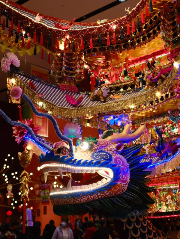 图为“过年——春节主题展”中展出的浙江乐清首饰龙灯彩。