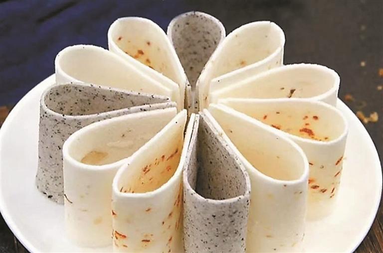 云片糕外观雪白,薄如书页,因其颜色与形状,又被民间称为纸牌糕,拿在手里柔软但有粘性,可以一片片撕开不断,吃到嘴里细腻、甜糯,仿佛一片云朵在舌尖轻盈舞动。
