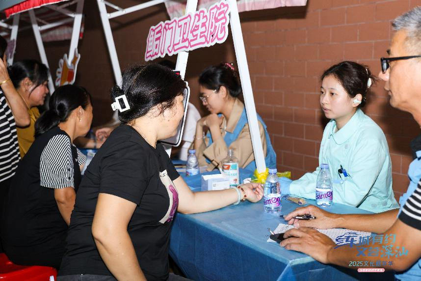 考虑到重阳敬老需求,活动设置的义诊区同样人气十足。鲘门卫生院的医护人员耐心为老年人测量血压、解答健康疑问,还提供中医理疗服务。