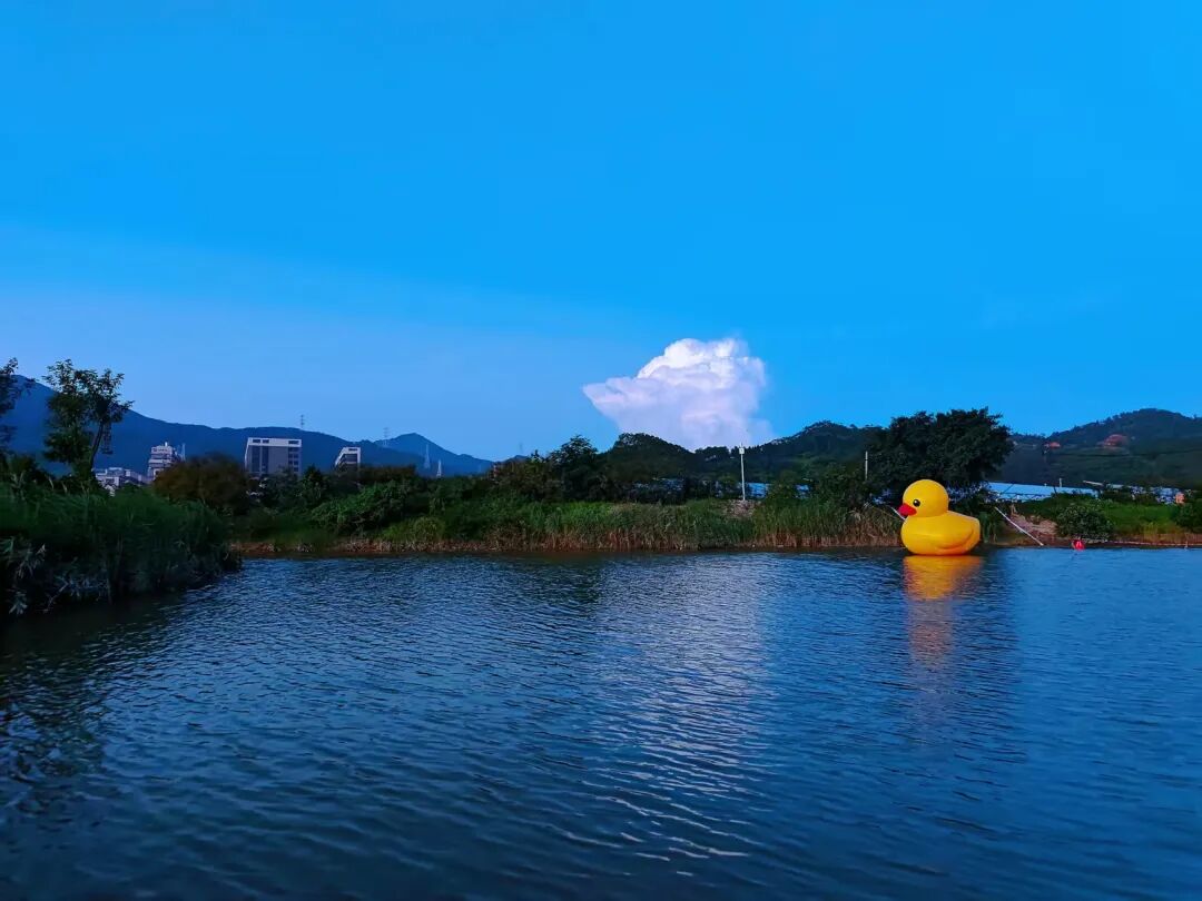 码头边排起长队,复古木船与萌趣动物造型游船交织穿梭,成为水上一道流动的风景。孩子们兴奋地登上天鹅船、复古船,更令人惊喜的是,水面设置的巨型大黄鸭造型憨态可掬,吸引大量游客驻足拍照,为诗意水乡增添一抹现代童趣。