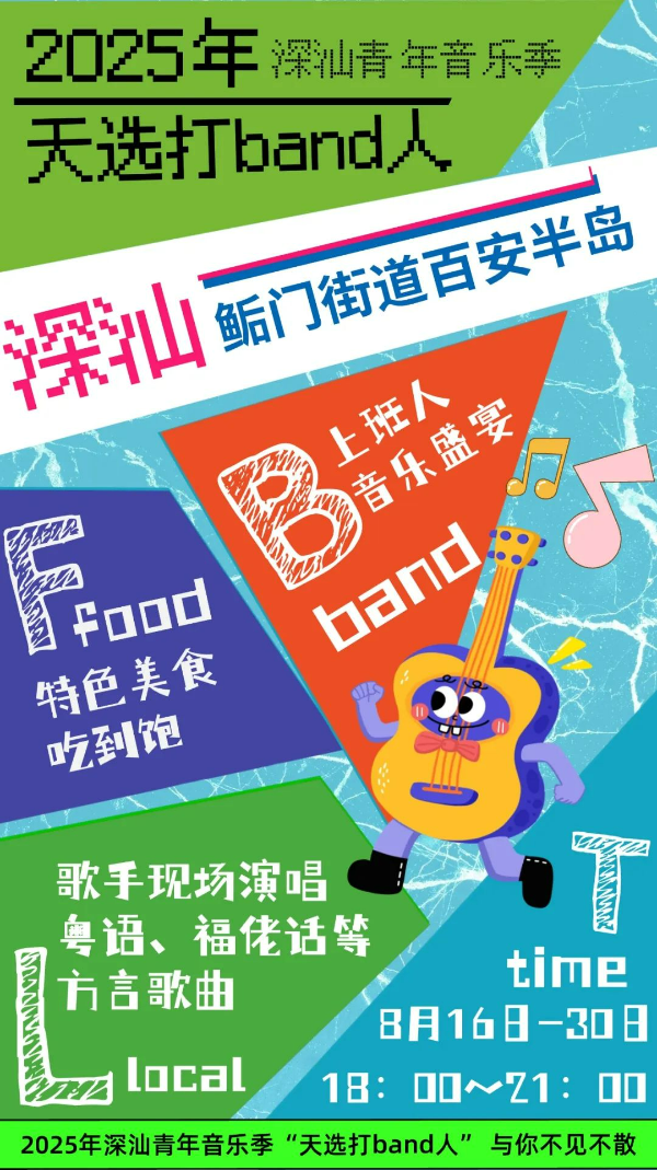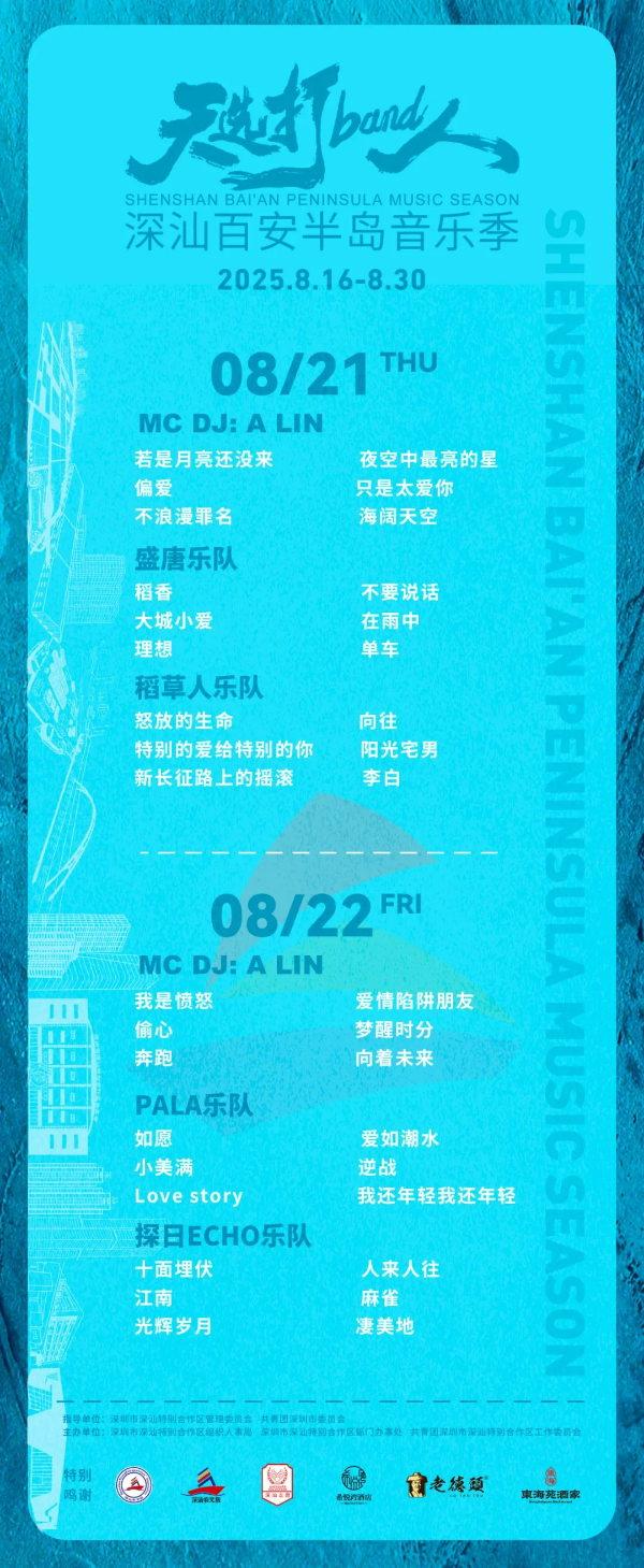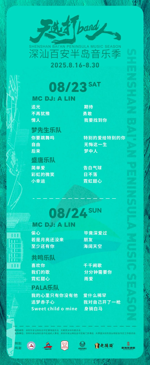 “天选打band人”深汕青年音乐品牌系列活动,不仅是一场场音乐节,更是“音乐+文旅”文旅新场景助力深汕高质量发展和文旅深度融合发展的强劲动能。它用最直击人心的旋律作为序章,邀请天南地北的青年,用脚步丈量这片“价值洼地”,用五感重新阅读这座“未来之城”。