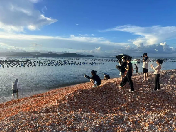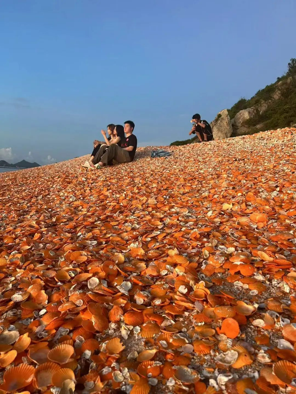 此处还有“颜值彩蛋”!如果你觉得这就够了,那便小看了深汕的宝藏程度。从百安乘船片刻,即可抵达神秘的江牧岛(南屿)。那里藏着一片罕见的红贝壳沙滩,无数细小的红色贝壳与珊瑚残骸被海浪淘洗、堆积,在阳光下泛着淡淡的粉色柔光。