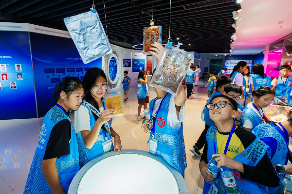 走进深圳市绿航星际太空科技研究院,孩子们在专业讲解员的带领下深入参观模拟火星基地,沿着时间轴系统学习人类航天事业的发展历程。现场近距离观察真品舱内航天服、太空食品及返回舱实物时,大家聚焦于返回舱表面因高温灼烧留下的斑驳痕迹,直观感知航天器穿越大气层时经受的极端考验。