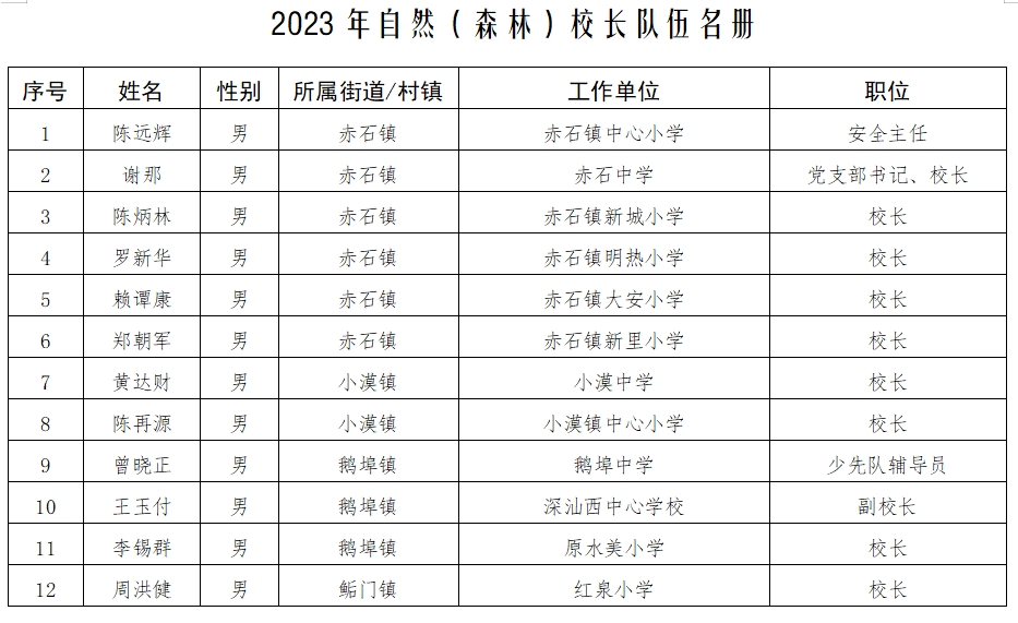 附件:深圳市深汕特别合作区2023年公众校长和自然 (森林)校长名册