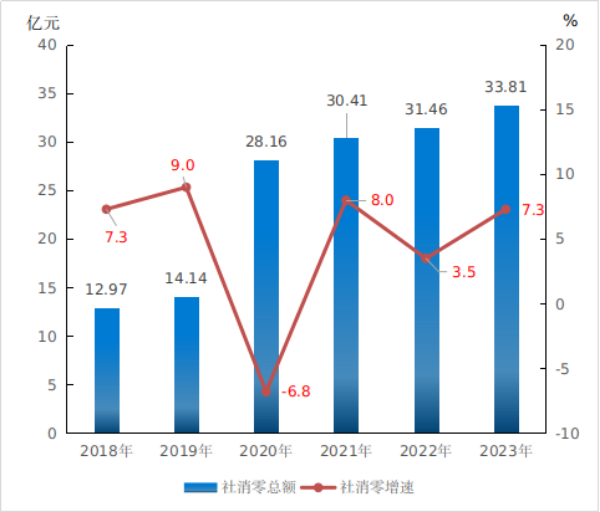 图4.2018-2023年深汕特别合作区社会消费品零售总额及增速