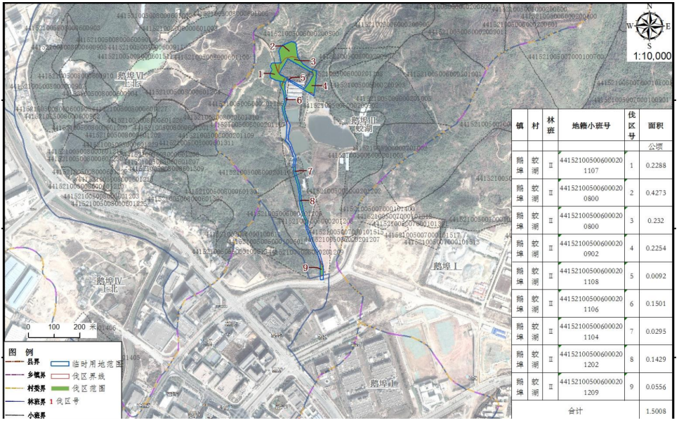深圳市深汕智造城产业发展有限公司申请的220千伏园区输变电工程临时用林林木采伐范围图