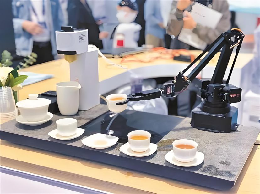 碗、盏、壶、杯等各式茶具,在机械臂的灵活调度下被轻松驾驭,演绎出一场科技与传统的完美融合。每一口茶汤都蕴含着科技与传统风情的独特交融,令人回味无穷,快来品一品吧!