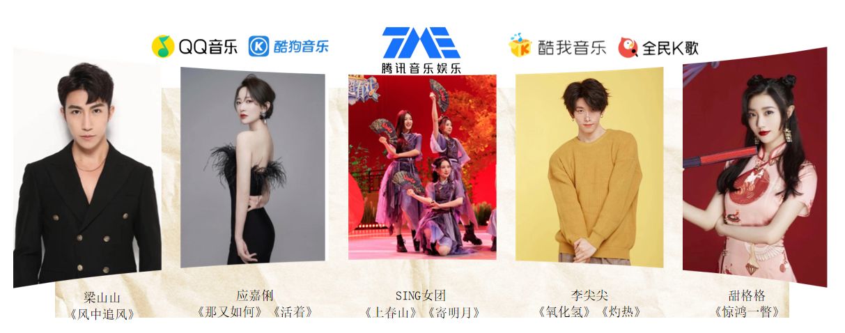 《不羡》《紫忆》《昭昭墨墨》……腾讯酷狗音乐旗下艺人将为大家带来一首首国潮风格的精彩演出。