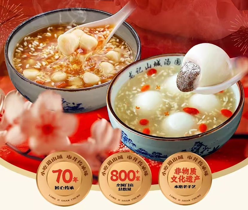 火遍全国的龙记山城汤圆第一家门店始于1947年,历经四代传承,总门店数突破800家。颜值和味道都在线,一定能俘虏吃货们的“胃”!